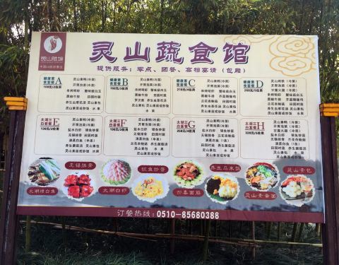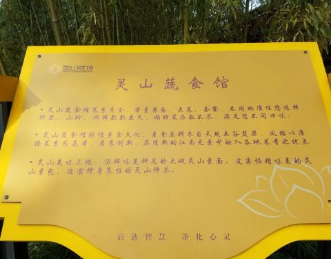 灵山蔬食馆环境雅致,独具禅境,首创系列灵山蔬食菜肴,菜品精美,风味怡口。灵山素宴、灵山素包、灵山素面堪称灵山三绝。