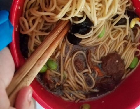 - 灵机一动,再花15元买了包烤麸,发觉蛮好吃的。也不去计较,有的吃即可