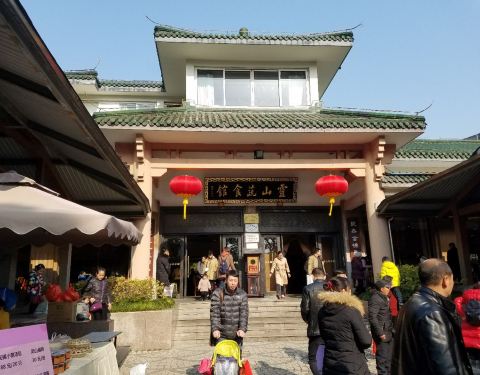 进入景区之后过了中午饭点,差不多快二点了到那里还是人山人海。也不去计较,有的吃即可。里面包厢有问过,虽然环境好,但要1500元一桌。外面大堂一碗面25元,灵山包子十元六个,六款冷菜15元一例任选。这样一买...