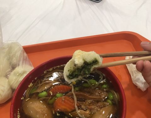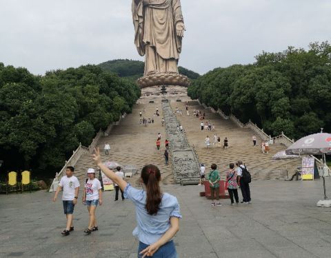 咦,原来还会自动链接游记内容生成点评啊,灵山景区很大,至少可以玩半天以上,慢慢逛的话也是个体力活,如果不自备干粮就得在景区内吃了,这个位于阿育王柱旁的蔬食馆在景区里来讲算是不错的,性价比也高,我们吃了素包和素面,素面20元一碗,厚道实惠,游客很多,但速度很快,打面的阿姨俨然是熟练工,用一把大大的勺子不断往依次摆开的空碗上先加面,后加料,素面里的浇头有多种蔬菜,面条也筋斗,景区内的食物普遍被人诟病,可这灵山素面,无论价格还是味道,皆得到我们一致好评。