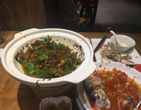- 「剁椒鱼头」是每桌必点,很入味,天气热了吃了满头大汗,鱼肉的鱼刺比较多,吃的时候要小心