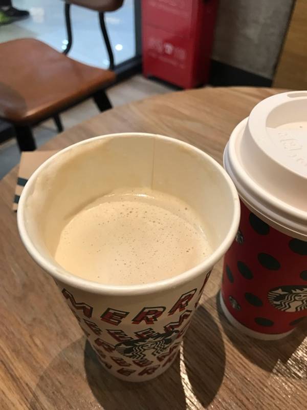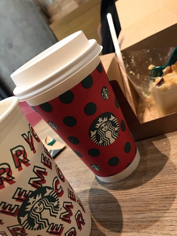 也是开了很久的星巴克店了,这次去发现从新装修了,公共空间更敞亮了,固定的沙发座下面还有插座,虽然个别插座损坏无法使用,但是还是不错的,服务人员配合上需要改进,新上的圣诞款已经开始售卖了,还有新的蛋糕也有,还有圣诞特款!