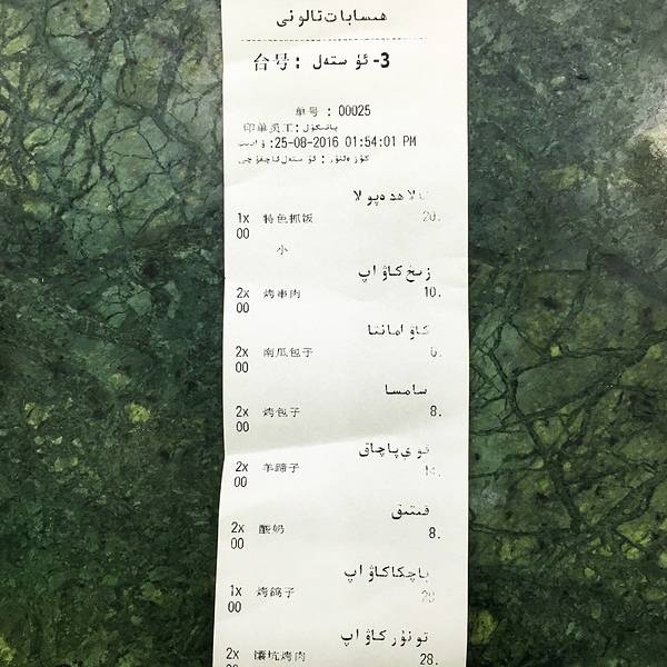 从黑夜来到白天,让我们从市井的夜市到奢华装修的大馆子拔个草。 在喀什要吃讲究一些的新疆菜一定要来安萨尔,大众点评一下就找到了。首先我们看看装潢,是不是富丽堂皇,充满了异域风情。必点手抓饭,这是我在新疆吃过最好吃的手抓,内容及其丰富,油油的米饭,混合了羊肉,葡萄干,杏干,里面的胡萝卜的甜味,让味道更加的突出。烤羊蹄原汁原味,对于有些人可能会觉得膻气。v头一次吃烤鸽子,滋味很足,不过就是有点肉质偏柴。肉串,因为点的种类多,所以就点的很少,肉很嫩很厚。馕坑烤肉觉得没有一般的肉串好吃。南瓜包子,里面的南瓜馅具甜,特别好吃。烤包子好吃到哭呀,里面大块大块的羊肉丁,鲜嫩多汁。酸奶很浓,也值得推荐。一结账,又正宗还不贵,强力推荐。