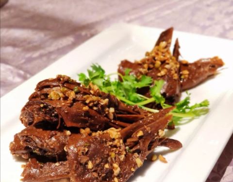 米酒煎包,里面包着米酒,很特别。 酸汤肥牛,不是那种很辣的肥牛,酸味正好,粉丝和金针菇打底。 泼辣鱼,鱼片很嫩,豆腐打底,香辣口感。 馋嘴鸭头,整体卤制过,酸味很浓。