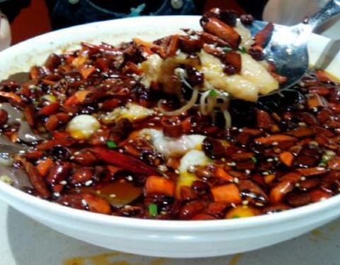 - 泼辣鱼,鱼片很嫩,豆腐打底,香辣口感。 酸汤肥牛,不是那种很辣的肥牛,酸味正好,粉丝和金针菇打底