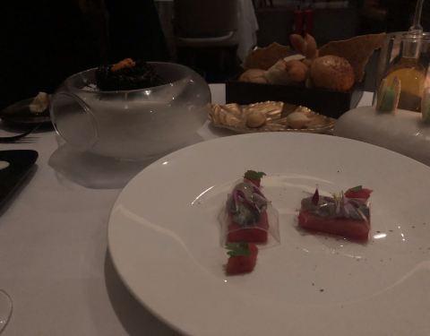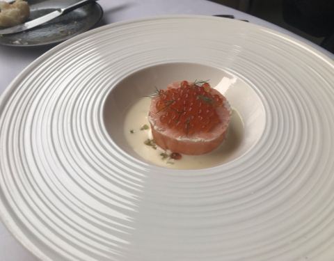 餐厅的人均消费在500元左右,属于法餐中比较正宗的,喜欢法餐的可以来体验下,推荐菜鸭肝、三文鱼,新鲜,味道不错。