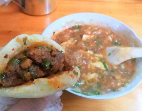 味道确实好吃,老早就知道这家名气高,这次去乐山专门去吃,没有让人失望,牛肉夹馍味道很正宗,豆腐脑很嫩,吃起有口感。