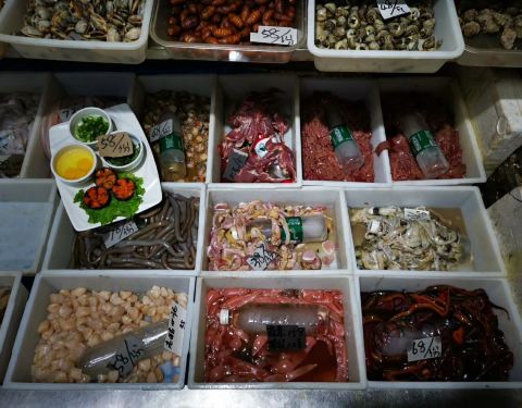 热力餐厅,烟台辛庄街1号。到了烟台,直接到了这家店。不起眼的一条小街,不起眼的门头,但味道真心不错。所有原料有专门的展示柜,现点现加工。印象最深的就是媳妇鱼,看起丑陋,但肉质紧实。辣炒鲍鱼其实一点不辣。红虾品质特别好,椒盐海兔可口。海肠看起恶心,但口感很好。最后上的饺子,里面有韭菜和各种海鲜,非常好。
