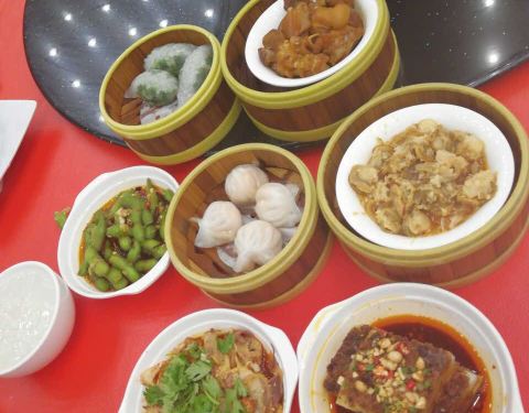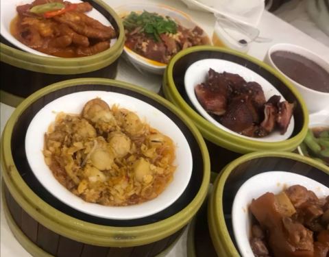 这家的晚茶据说还不错,菜品都是自己端盘子拿,会有人记账。虾饺,还不错,里面有两只虾。凤爪,真的挺好吃,根本就停不下来。蒜蓉扇贝,味道很特别,必须拿,很赞。黑椒牛仔骨,好吃停不住,很棒。