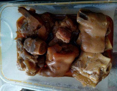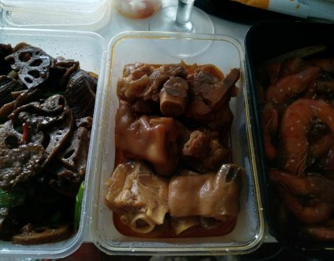 今天晚上点了一份外卖,三五醇欧洲花园酒店的三道菜。香辣基围虾,红烧蹄花,卤藕牛肉,三道菜味道还不错,分量差一点,不过毕竟是三五醇,大酒店出品,总体还不错的。