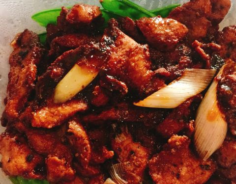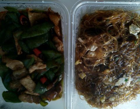 今晚点了一份外卖,两道菜,比较简单的菜式 ,不过家人都很喜欢。一道是干捞粉丝,另一道是农家小炒肉,推荐干捞粉丝,粉丝很有嚼劲,农家小炒肉也不错,现在青椒很贵的,商家给了这么多,已经很棒了。
