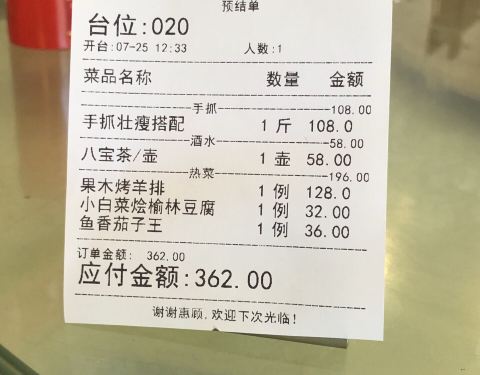 离开银川前特意来这里体验了一下,整体味道可以,手抓不腻,肥的也好吃,个人更喜欢羊排,更香一些。八宝茶我感觉更像蜂蜜水,好甜啊。