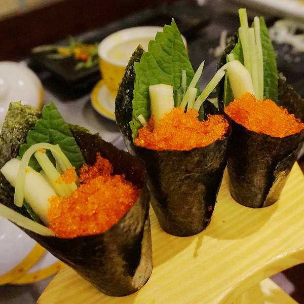- 清酒鹅肝比较特别,不过不配苹果的吃法还是特别腻。鳗鱼帝王蟹都不错,服务很好。手卷还好,不难吃