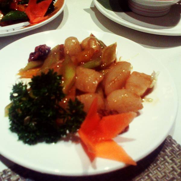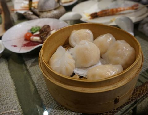虾饺里面有虾仁碎跟类似马蒂口感的白色小丁状食材,没吃出来确切是什么,还是习惯整颗虾仁的虾饺,调味还不错。