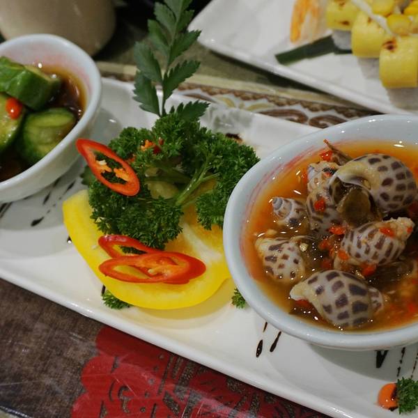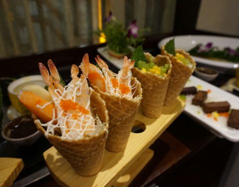 豪华海鲜盛宴,点餐式的海鲜自助餐厅,除了主菜可以点自己任何爱吃的副菜避免浪费,环境很干净,即使午餐来吃人也还是蛮多的。海鲜菜品都很新鲜,刺身是师傅现场制作,主菜鹅肝海胆蒸蛋雪蛤燕窝味道不错。服务很贴心,照顾的很周到。还有很多泰式新菜品也很棒。 当然了来这里一定要准备好自己的胃,不然主菜过后肚子就已经饱了。