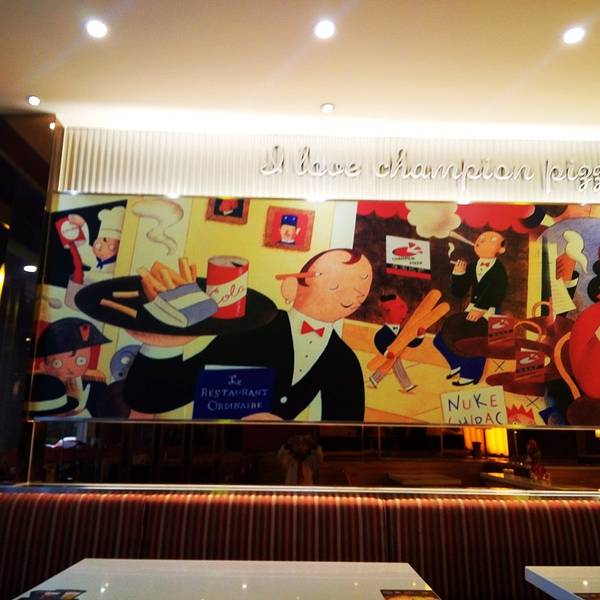 环境:小小的门面,里面却很宽敞,卡坐很多,比三元里大道那家舒适多了。温馨舒适的用餐环境,整体干净整洁,洋溢着浓浓的意大利风格。 出品:尊宝酥香脆软的饼底是公认的,轻轻咬上一口刚出炉的尊宝比萨,丝丝悠长,为之美妙!双层芝士超级豪华比萨由火腿、炭烧烟肉、美式香肠片、菠萝、蘑菇、黑橄榄、青椒、洋葱做成,无论是选材 、配料还是制作工艺都属上乘。它把普通比萨的多馅料发挥到了极致,肉多、芝士多,这种奇妙的口感味道,100个赞! 最想要分享的是秘制鸡翅,一口咬下去,鸡皮内的肉嫩到惊讶,不会是那种干干的口感,而是汁水丰富,好吃到根本停不下来! 价格:48元十寸的比萨真的是很划算,尊宝一度成为我们公司的午餐食堂,就是因为用餐环境舒适且价格亲民,非常推荐!