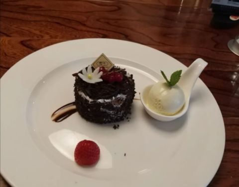 黑森林蛋糕,甜而不腻,巧克力味浓郁,苦味适中,配上冰淇淋球球,口感胜过仟吉的黑森林蛋糕。蒜香鸡中节,肉比较嫩,略带咸味。韩式炸鸡,香味浓郁,口感酥脆,有点小惊喜。