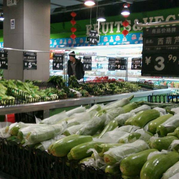 “很大”的超市,类似“家乐福”那种,“集餐饮、购物与一体”,门口停车位“还算充足”。主打生鲜类,蔬菜、水果“新鲜”、“品种多”,价格“实在”,经常“早上一开门”,大爷大妈们“跟打仗似的”在货架前抢购。海产区“快赶上批发市场了”,“虹鳟鱼、鳗鱼、龙虾、鲍鱼、帝王蟹全都有”,要是运气好买到“刚去世的”,超级划算。