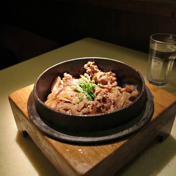 如果想来半球山吃饭的话,最好是能早点去,不然的话光拿号排队,就需要半个小时到一个小时的等待。不过等待区一般会准备一些柠檬水和果汁,以及一些小的点心可以免费自取的。不过叫号的那个广播实在是个噪音,而且不间断的重复很多次,很吵,本来等待就是一个比较容易烦躁的事情,如果在制造这么大的噪音会明显让人更加烦躁。希望这个能改进一点,等待的过程中就看到有小朋友捂着耳朵过去找门口的接待员,要求把叫号的声音关小一点。走廊有给带小宝宝的顾客准备的小床,方便让睡着的小宝宝睡的更舒服点,这点让带宝宝的顾客是很满意的。因为孩子很大了,没有使用过,不知道卫生情况。以前在每个区域都有书籍和报纸,可以在等待上菜的过程看看书和报纸打发打发时间。后来再去就没有了,然后虽然进入餐厅落座的时候服务员就会告知餐厅有免费的WIFI,但是同时那么多人在使用的话,就显得很无力了。所以个人建议还是应该恢复报刊设施!餐厅的出品略慢,不过比之前要快很多了,以往在上菜高峰期要等半个小时以上,现在差不多20分钟就能上第一道菜了。泰皇炒饭和日式肥牛煲仔饭是老公和儿子每次来必点的主食。经典牛排双煎鸡蛋,有胡了的部分。
