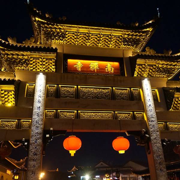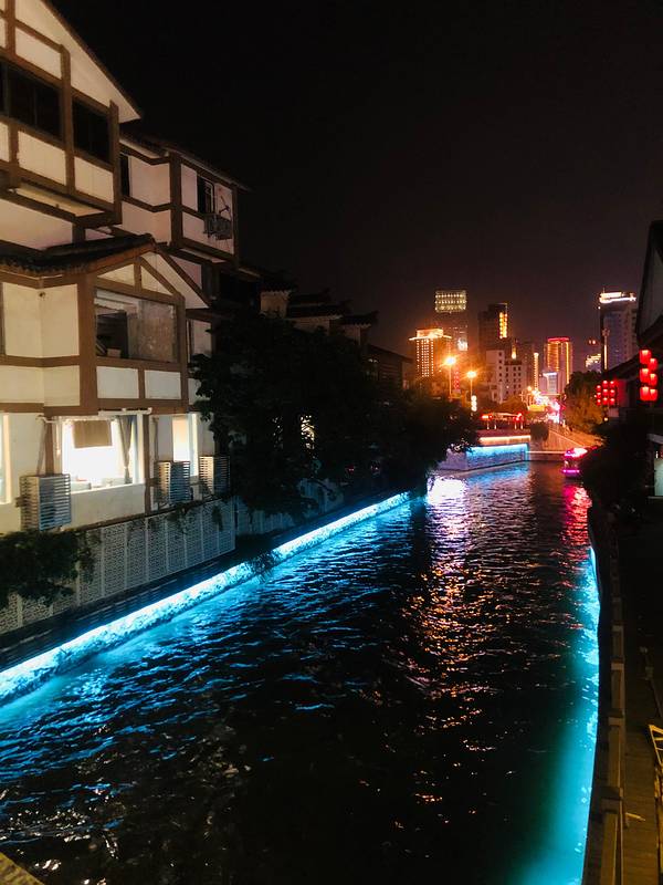 安顿好后,我们就往南禅寺出发。南禅寺前面的牌楼。南禅寺正门,这个时间点,寺庙已经谢客了。南禅寺夜市后面的古运河。南禅寺这边晚上的夜市有很多特色小吃,本地的,外来的人挺多,熙熙攘攘的。古运河就围绕在夜市周围。从夜市的任何一条路,走着走着就能到河边。运河被个色光带装饰着,靓丽又略显俗气。