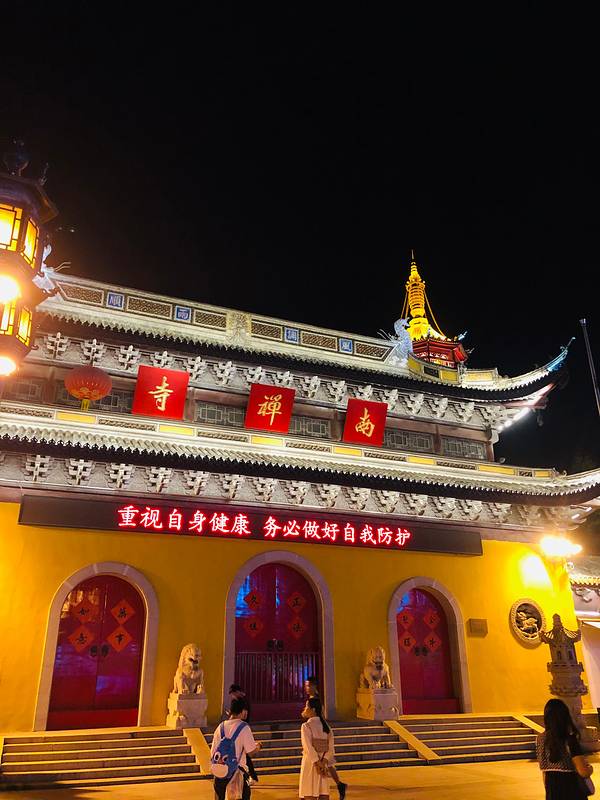 游客口中的南禅寺,应该是南禅寺景区及其周边,夜间前往南禅寺,南禅寺是闭寺的,不过南禅寺内的灯光还是开启的,让游客觉得它香火旺盛。南禅寺的牌坊后面写着江南最胜丛林南禅寺内的秒光塔,夜间灯光开启,特别的显著。南禅寺周边的街巷,是以美食餐饮店为主,这里也是来无锡旅游,吃货的天堂,在这里可以品尝到各式各样的美食,推荐去无锡比较有名的熙盛源品尝正宗的无锡汤包。南门头上美食街是南禅寺景区附近人气最旺的美食街,长度大概有150米,这条街两边都是各式各样的美食店,烧烤、海鲜、热干面、炒菜,甜品等等,特别是在晚间,游客的人数更多,大家都来这里吃夜宵了。在这条美食街的道路上摆满了餐桌,餐厅内坐满的话,就需要在户外就餐了,不过我看到很多食客宁愿在外面就餐,或许这是南门头上美食街的就餐文化吧。无锡的古运河经过南禅寺景区,吃好晚餐可以站在桥上,欣赏无锡古运河的美景,时不时的还会有无锡古运河观光船经过,想体验的游客可以去体验一回。南禅寺离三阳广场也很近,也可以乘坐无锡地铁1,2号线到三阳广场,然后步行前往,途径无锡老品牌餐饮店王兴记,还能去品尝无锡汤包和王兴记的三鲜馄饨。 展开