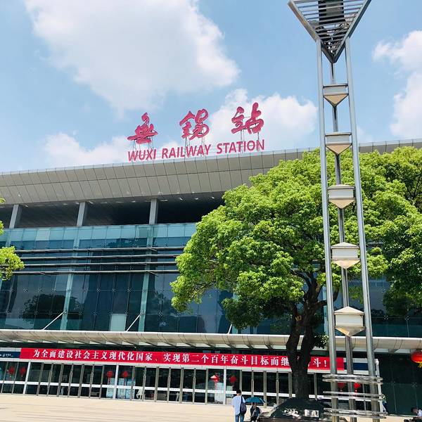 无锡站挺新,旅客不多,轻松出站。出站后,没有看到平常火车站那这样的广场,直接就到了马路边。公交站就在附近。很有意思。这张照片是从无锡出发时拍的,进站口却有广场。公交车上拍的无锡街景。无锡,简称“锡”,古称梁溪、金匮。北倚长江、南滨太湖,被誉为“太湖明珠”,京杭大运河穿境而过。无锡是国家历史文化名城。是江南文明的重要发源地之一,有文字记载的历史可追溯到商朝末年。无锡有所著名大学,江南大学。
