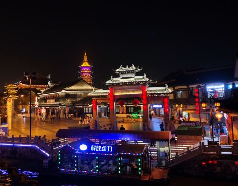 非常漂亮的江南水乡景点,吃的也非常多,价格也低。白天夜晚景色各不相同,非常非常值得一看!