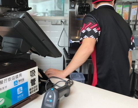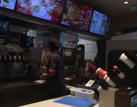 提餐人像呆木鸡一样,点餐人无笑容,死板板的: