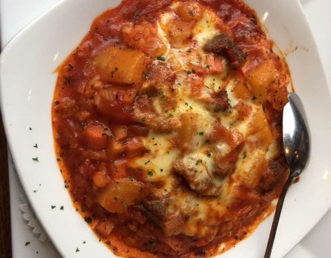 好像叫匈牙利鸡肉焗饭?挺好吃的。千层面也还可以,美式大薯格也还可以