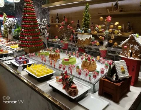 环境很好,服务也不错,冰淇淋是莫凡彼的,不同与其他自助餐的哈根达斯,蛋糕甜品也很好。现煮海鲜很新鲜。冬季还推出了暖暖的火锅。