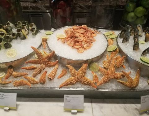 第一次来,总体很不错。三文鱼厚薄适中,现煮海鲜很实惠,热菜会在一定时间内更换,总有一款适合自己的。牛排什么的也都是现点现煎,很新鲜。