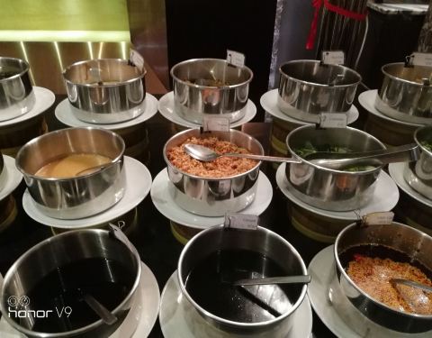 很有过年的气氛,大红灯笼高高挂,晚上跟小伙伴去吃的,感觉总体挺好的,还有小火锅、现煮海鲜、现煮意面,菜品挺多的