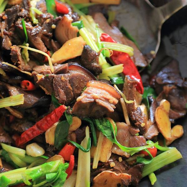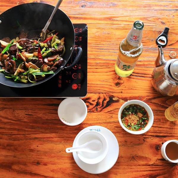 下了山 一路去找狗肉了 路边挺有意思的,各种算命的地摊 胜过 上海 那种求助的 至少靠本身赚钱 那会儿4点多,想要是没开的话,先摸熟位置就好 没想到,开了 之前看了点评,都说要2斤起点 老板娘也没描述得那么凶 看我一个人,让我点了1.5斤 所以说人与人之间,体谅最重要 吃不了也是浪费,是吧 这时候天色还亮 看着老板娘切切弄弄炒炒的,还挺好的 然后香气四溢的就上来了 放在电磁炉上,冷了可以开炉子再炒一下,更香 怎么说哦 这个口感有点像农家的山猪肉这种 带点烟熏的味道 皮,脂肪和瘦肉 皮是脆的那种,冷了会嚼不动 脂肪几乎没有,收缩成润润的连接 瘦肉很香,不柴 单口吃就很棒 关键是狗扣,就是去骨的肉 配菜是芹菜和大蒜、姜 可以调剂下口感 然后要说下蘸酱了 还是 柳州 的主旋律味道 泡姜是主角 应该还有荞头和不上火的香料末 酸度用来解腻,辣度是悠悠地带出来的 光和啤酒还压不下去 倒是凉茶还挺给力 这个,作为夜宵撒的,应该很棒,3、4个人 加点蔬菜撒的 好像还有汤的