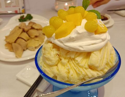 在猎德优托邦逛,偶然发现这间店,觉得装修风格还不错,挺高级的就进去了。 首先点了茉莉花茶,清香好喝。 菜单的菜品挺多,应该是粤菜为主,3个人吃饭点了5个菜,总体都很满意,最最推荐这三个: 1.街婶出浴:59元,可以说是便宜又好吃,豆腐嫩滑,入口即化,里面还加了海味,味道更香,菜盆很有特色,就是一个小浴缸哈哈哈,怪不得叫街婶出浴; 2.调皮大厨的冰皮鸡,78元,很特别的名字所以就点了,上来有半只鸡,分量是挺足的,口感爽脆,而且还是去骨的,味道很棒; 3.芒春白雪:这是一款甜品哈~就是芒果雪糕杯,但是想不到只是一家酒楼雪糕也这么好吃,出品一点都没有马虎。 下次还会来~~