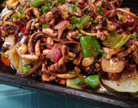 干锅鱿鱼,鲜锅兔,清蒸鱼,大龙虾,好好吃喔,有滋有味,量也好足喔!服务态度也蛮好喔!值得推荐!