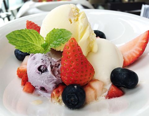 - 整体的餐品味道一般,但是鲷鱼的配菜藏红花味莲藕和紫薯片味道不错,最好吃的是蓝莓和芒果冰激凌,细腻浓郁