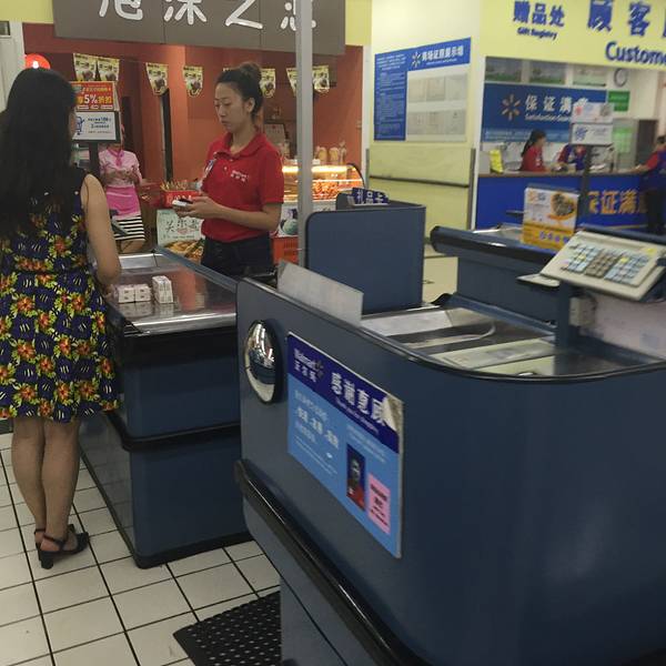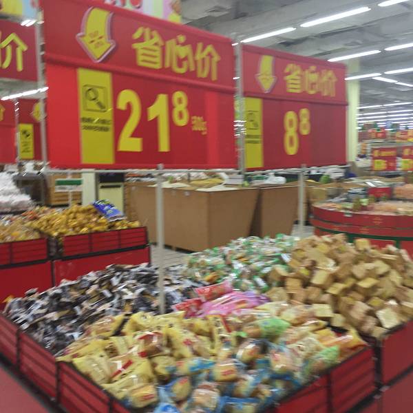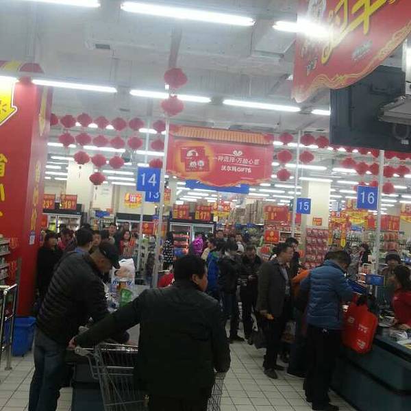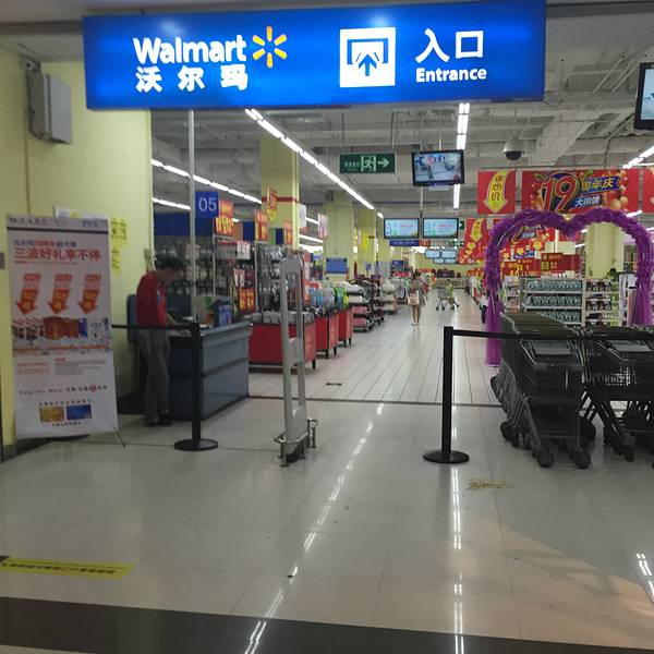 沃尔玛超市在运城盐湖区,是唯一的一家,处在运城东区的商圈里。我是运城办事,住在附近的恒泽酒店,晚上闲的无聊,决定去附近的商场逛一下,才发现的。从住处走路过去,500米左右,步行五分钟就到了。附近公交,分别是1路、2路、88路等,交通还是十分便利的。超市在商场的二三层,面积挺大的。从商场的扶梯上楼,就能看见,二楼是入口,这一层都是日化用品、家居、小电器等等,三层是出口,也就是收银结账的地方,这一层琳琅满目的货架上都是吃的——零食、油米面、水果、熟食、饮料等等。超市大概有二十几个收银台,不是节假日,并不是很忙,超市的银台并没有全开,结账时,还得少许排队。服务员的结账速度也很熟练,真着统一的制服,服务态度挺好的。买了个冰激凌,需要勺子,结账时候,询问服务员,服务员说要到客服台才能领取,哎,分工很明确,但是为了个勺子还得换个点儿,真是不易,幸亏离的并不是很远。超市的客服台在收银对面店面的右边最后一家,略有点小,旁边放了几张简单的桌椅,可以提供顾客临时就餐。额,总的说来,作为连锁性超市,这个还算不错吧,比起一二线的城市面积小了少许,但是这里的货品也较集全,价格,个人感觉没有因为他是连锁或者地区的什么原因,而有所优惠多少,服务倒是一如既往的好,点个赞吧。