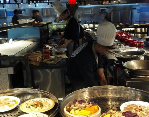 我们就在这里吃~~随便吃吧~小绍兴菜馆看样子几乎是家人开的, 没菜单,在现场选菜。老板娘蛮热情,推荐我们吃当地菜。还给我们优惠嘻嘻~~
