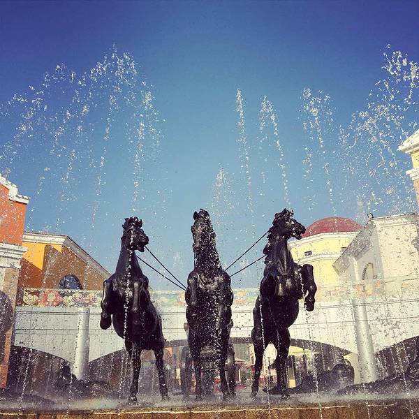 奥特莱斯购物都不错,就是位置太偏,这家也是,旁边很荒凉,出租车都很难打到,还好有叫车软件。这家莱特莱斯建筑风格都以欧式小镇的样子建的,而且颜色很多,从外观上看就很漂亮,里面品牌也有很多,特别是一线品牌打折力度也大,但都是过季款式,另外国内国外其它二线三线品牌这里都有,仔细淘淘还是有不错收获的,逛累了到处都有休息处很方便,饿了里面也有餐厅,由于都是室外,这里下雨或者天气太冷不适合逛。 交通:由于位置比较偏,自驾的话比较方便,而且停车免费,乘公交的话就是290路、289路在腾龙大道川龙大道口下,如果从市区打车过来的话大约50块左右。颜色很炫,配上蓝色的天空很美。品牌很多,整个奥特莱斯全部逛的话至少要一二个小时。中间有个喷泉很好看。