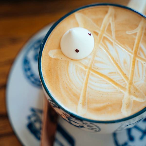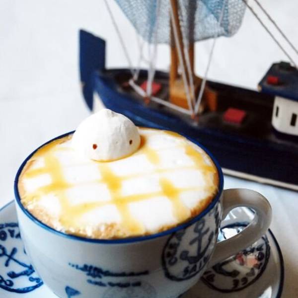 这意面看着就超级好吃有没有~很正宗的茄汁鸭胸面味道~小海怪不仅看起来可爱,咖啡味道非常香浓