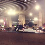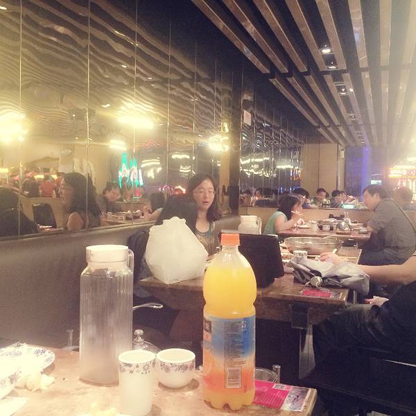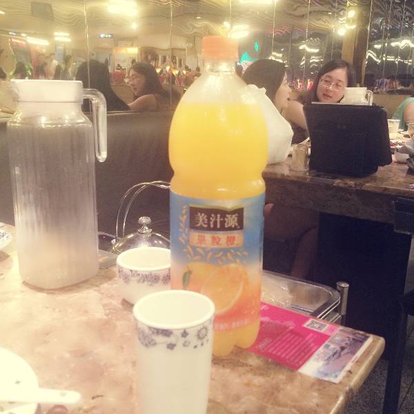 其实还吃了一盘小龙虾,10块钱一只,都没有拍。完全是忘记了,吃的太忘乎所以。最后因为剥皮鱼是坏的,送了我们一瓶果粒橙做补偿,我想说,能打个折吗?啊哈哈。这是吃坏肚子的代价啊。就值这一瓶果粒橙了,必须拍下来做纪念。他们家还有一个跃层,好像都是包间。包间也出出进进的很多人。看起来都是年轻人。旁边那个亮的是洗手间。洗手间还是很不错的,还有递擦手纸的阿姨。感觉棒棒哒。环境很干净。就是有点嘈杂。不过在簋街能找到不排队又好吃的辣味菜系已经很不错了。真的是比较喜欢他们家。虽然有时候季节不好,皮皮虾不够肥和新鲜,但是味道绝对OK。