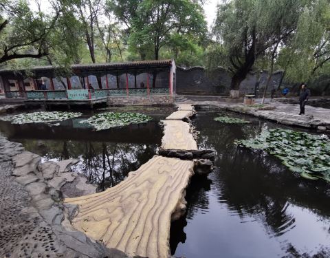 公园景点以五眼名泉和佛教古建筑为主,园内丘壑起伏,林木葱郁,环境清幽。
