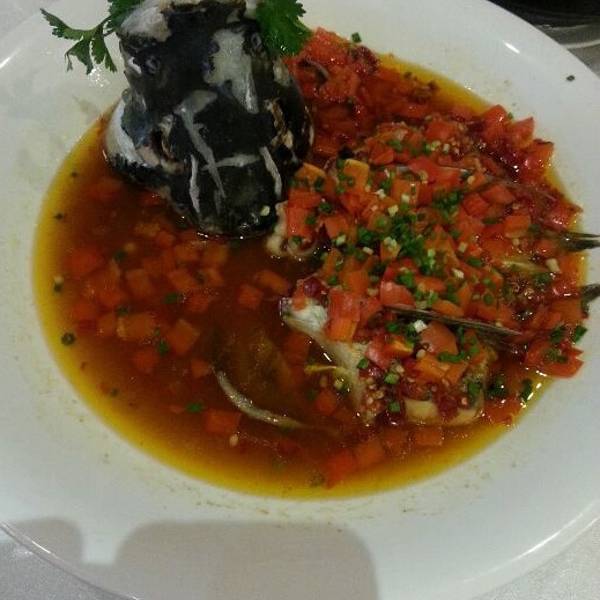 因为是同客户吃饭,所以去的是里面的大包厢,经过的走廊有点狭窄阴暗。本来以为这种宴席是吃不到什么好的了,不过出乎意料有些菜做得还不错,特别是上来的一份土豆,不辣,熟度也刚刚好,煎牛肉也是非常好吃,只...因为是同客户吃饭,所以去的是里面的大包厢,经过的走廊有点狭窄阴暗。本来以为这种宴席是吃不到什么好的了,不过出乎意料有些菜做得还不错,特别是上来的一份土豆,不辣,熟度也刚刚好,煎牛肉也是非常好吃,只是时间长了,没人去翻面就很容易煎糊了。照顾外国客户的口味没有特别点辣的菜,没想到的是他们居然说不介意放辣椒,最后就点了道牛蛙把他们辣的够呛。这里的服务还算不错,加菜或加换餐具都比较及时,似乎小房间里一直都有人,比之之前去的招待客人却老是叫不到服务员的地方要好多了,它家的鱼头做得很好吃,应该是招牌菜式之一.第一次去的时候,点了五个菜,吃撑了!第二次去点了两个菜和一窝面,两个人吃的话,点个剁椒鱼头、油菜苔和面就够了。第一次试吃的时候,点了个剁椒鱼头、大蒜根和香菜根做的凉菜、土豆焖排骨、酱血鸭、养生四宝.