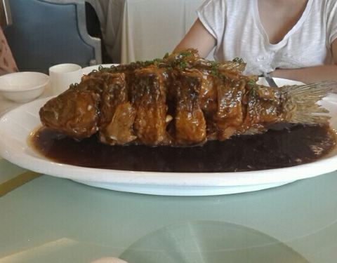 - 海凉粉味道很正,没吃上鲅鱼水饺有点可惜,扇贝水饺也挺好吃。我们吃的大鲤鱼,我家姥姥一个人就吃了多半条