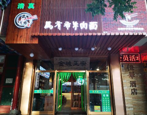 面馆是当地著名的正宗的兰州拉面。面条非常有嚼劲儿,面汤非常的鲜美,牛肉好好吃哦,我额外加点了一份牛肉