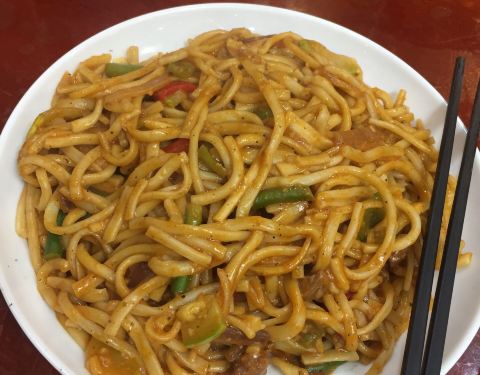 在中山桥公交车站旁边,所以生意很好。吃饭的人很多,有时候需要等的时间比较长。菜品是经典的牛肉面餐馆都会经营的品种。挺实惠的。要了碗炒面条,量很大,一大盘子。看着师傅在后厨拿着一大口锅在炒菜炒面。一锅能做不到十份,晚上吃饭人多的话,在取面口要等一会儿。茶水和面汤免费提供,还不错。