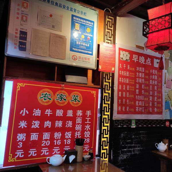 很不错的一家店,在景区里能遇到这样的店真的是缘分,强烈推荐。 住在平遥古城,趁着早上游客没来就开始扫街是我多年的一个习惯,从县衙的影壁背后往南城墙走,二十米左右的右手边就看到了这家店,看了看价格还算平价,就边逛边找别的店看看,走了一圈发现,他家卖两块钱的豆浆在别人家卖六块,就调头回来吃饭了。 豆浆两元小米粥两元豆腐脑三元,刀削面八元,小笼包十元,油条两元,小菜免费,两个人在景区一顿早饭只花了29元就吃的舒舒服服的,简直是让我感动到流泪,其他游客可能觉得我有点儿夸张,如果你跟我一样在壶口和皇城相府吃两天饭再来平遥,相信也会和我有一样的感受。 价钱便宜,味道和服务可不含糊。 油条我嫌有点儿凉了,马上给炸新的。 小笼包我想尝尝肉馅和素馅的,马上给我两样拼一笼,走遍全国我都没这么无耻地点过包子,这是第一次😂 虽然没在他家吃午餐,但是我看了菜谱,也和别家比较了一下,明显还是比较便宜的。 最后一张图,附一张其他餐馆的早餐价格对比。 虽然说平遥古城的管理比其他景区明显高出几个档次,但是能有这样的饭店还是很让我满意的,强烈推荐给各位。