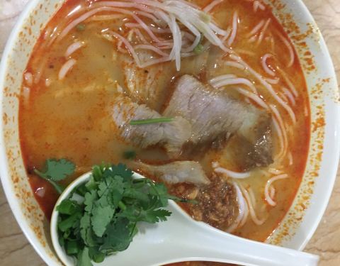 小有名气的缅甸风味小食店,这家餐厅的鱼汤粉是镇店之宝,选用细细的扁米粉,汤底使用鲜鱼熬煮,十分浓郁鲜香。椰汁鸡捞面不带汤汁,但用于捞制的面粉是事先炒过的,再加椰汁鸡一起拌匀,椰味更加浓郁。
