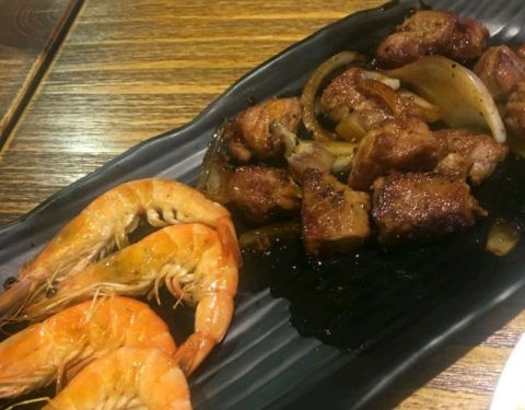 - 烤虾和牛肉都挺好吃的,还有一个照烧鸡排,上面的色拉酱调味很好