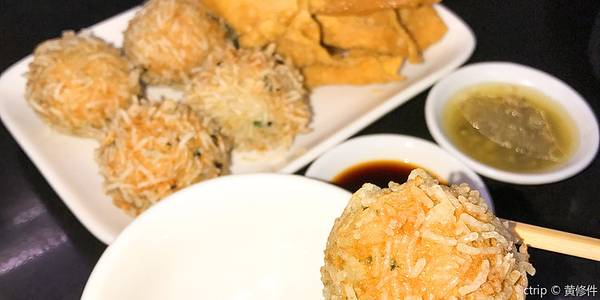 ...比如棱鱼球很好吃,很大一个,虾子面不错,配的鱼汤很好喝,粥很绸,入口很浓郁的感觉,肉片也很新鲜